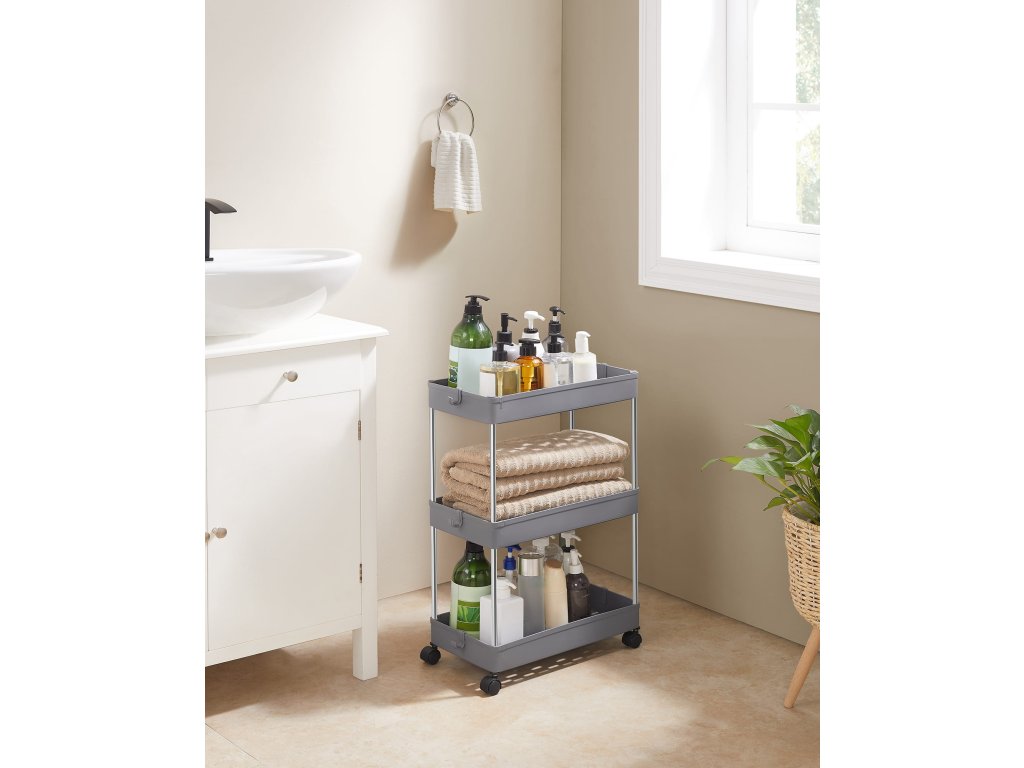 Rafturile practice pentru baie sunt soluția ideală pentru menținerea ordinii și clarității. Datorită construcției ușoare și durabile din oțel cromat și polipropilenă, sunt ușor de întreținut și rezistente la umiditate. Rafturile pe mai multe niveluri permit utilizarea eficientă a spațiului și accesul facil la toate lucrurile necesare. Datorită posibilității de a adăuga sau elimina rafturi și roți, pot fi adaptate cu ușurință nevoilor dvs. specifice.