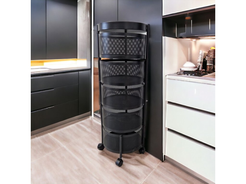 OFERTA Etajera rotativa pe roti ROUND SZ33 cu 5 cosuri, negru II calitate