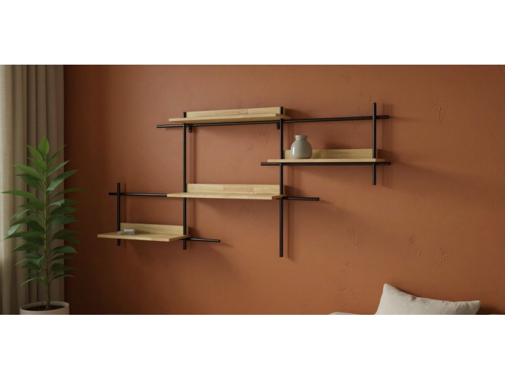 Căutați o modalitate de a utiliza eficient spațiul și totodată de a adăuga un aspect elegant interiorului? Acest raft modern industrial combină funcționalitatea cu un design atemporal. Datorită construcției metalice și rafturilor din lemn, este nu doar stabil, ci și estetic impresionant. Servește excelent la expunerea decorațiunilor, cărților sau plantelor și se adaptează ușor la diferite stiluri de interior. Adăugați în casa dumneavoastră un element care este practic și totodată stilat.