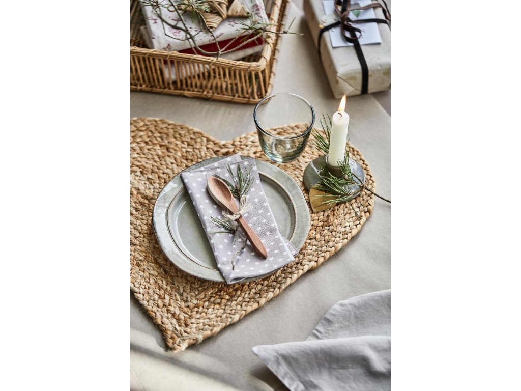 Napronul de iută aduce în fiecare casă un strop de natură și protejează masa de deteriorare. Forma sa unică de inimă și textura naturală creează o atmosferă confortabilă la fiecare masă. Se potrivește perfect cu mesele din lemn sau rustice și se asortează excelent cu alte accesorii naturale, precum șervetele din in sau vesela din ceramică. Lăsați colțul de dining să iasă în evidență prin eleganța simplității și bucurați-vă de fiecare masă din plin.