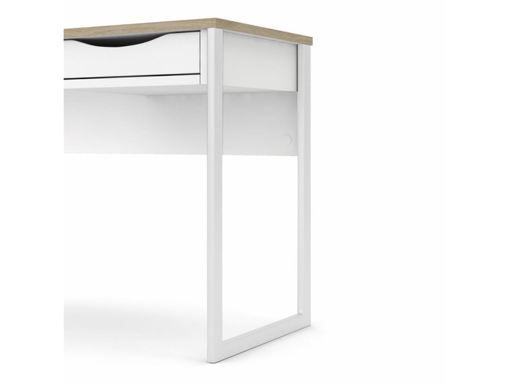 Birou cu 1 sertar si blat in decor de stejar Culoare alb, EFREM PLUS 513
