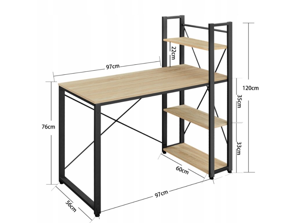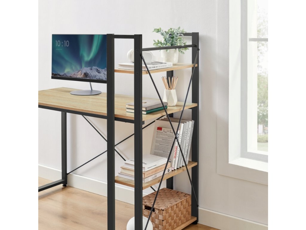 Masa de scris TAYLOR SONOMA cu raft 120 x 60 cm aduce o combinație de metal negru și panou în decor stejar sonoma, oferindu-i un aspect elegant și, în același timp, practic. Datorită raftului integrat cu trei polițe, veți obține suficient spațiu de depozitare pentru cărți, documente sau decorațiuni pe care doriți să le aveți la îndemână. Dimensiunile de 120 x 60 cm oferă o suprafață de lucru spațioasă pentru sarcinile zilnice, munca la computer și studiu.