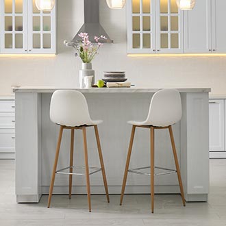 Set de sufragerie 1 + 4, masa KAMI 80x80 alb + scaune gri BALI MARK