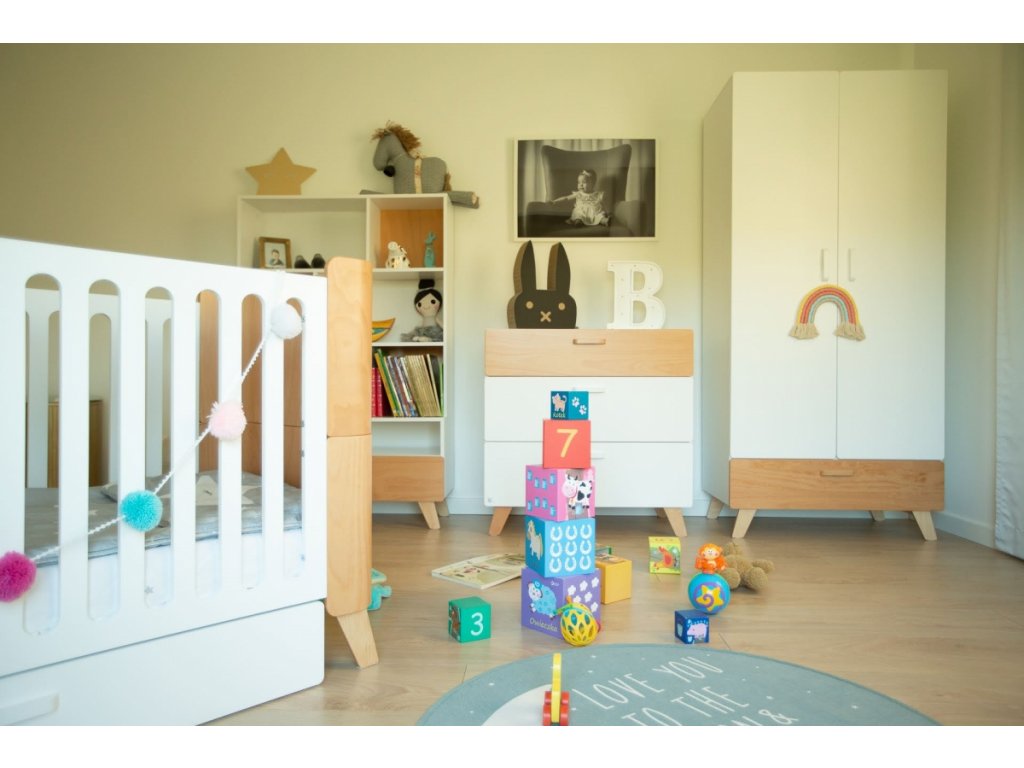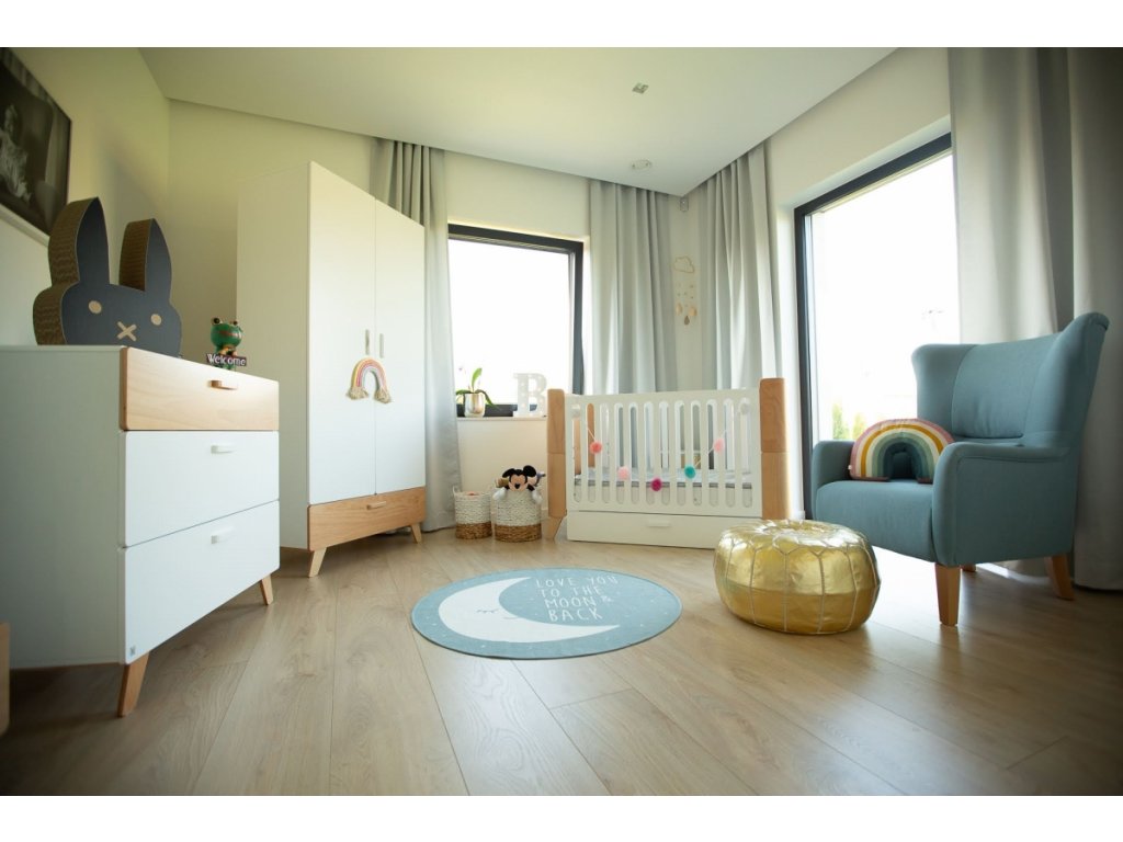Amenajarea camerei copiilor în stil scandinav se concentrează pe simplitate, funcționalitate și elemente naturale. Folosiți culori neutre precum alb sau gri pe pereți și pe mobilierul principal, completate de accente pastelate delicate. Elementele din lemn vor adăuga o senzație de căldură și confort. Mobilierul ar trebui să aibă linii curate și să fie practic, de exemplu, paturi cu spațiu de depozitare. Utilizați cutii de depozitare și rafturi pentru organizarea jucăriilor. Completați spațiul cu materiale naturale precum bumbac și in și concentrați-vă pe utilizarea maximă a luminii naturale completată de corpuri de iluminat simple.