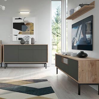 Comoda TV TAYLOR SONOMA cu rafturi si sertare, 147x40cm