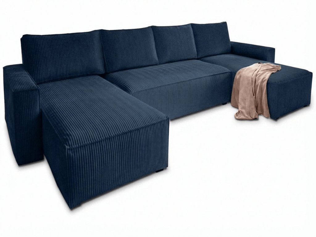 Coltar in forma de U SMART COSARO 295x140 cm, albastru inchis