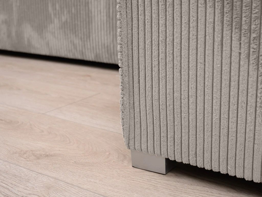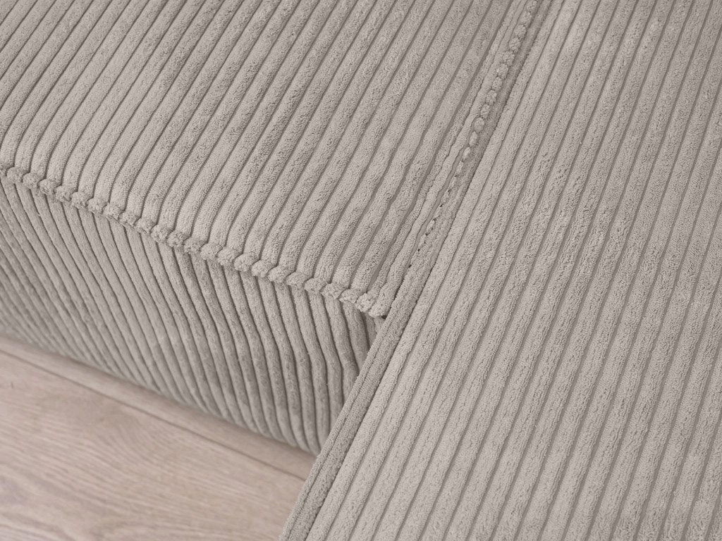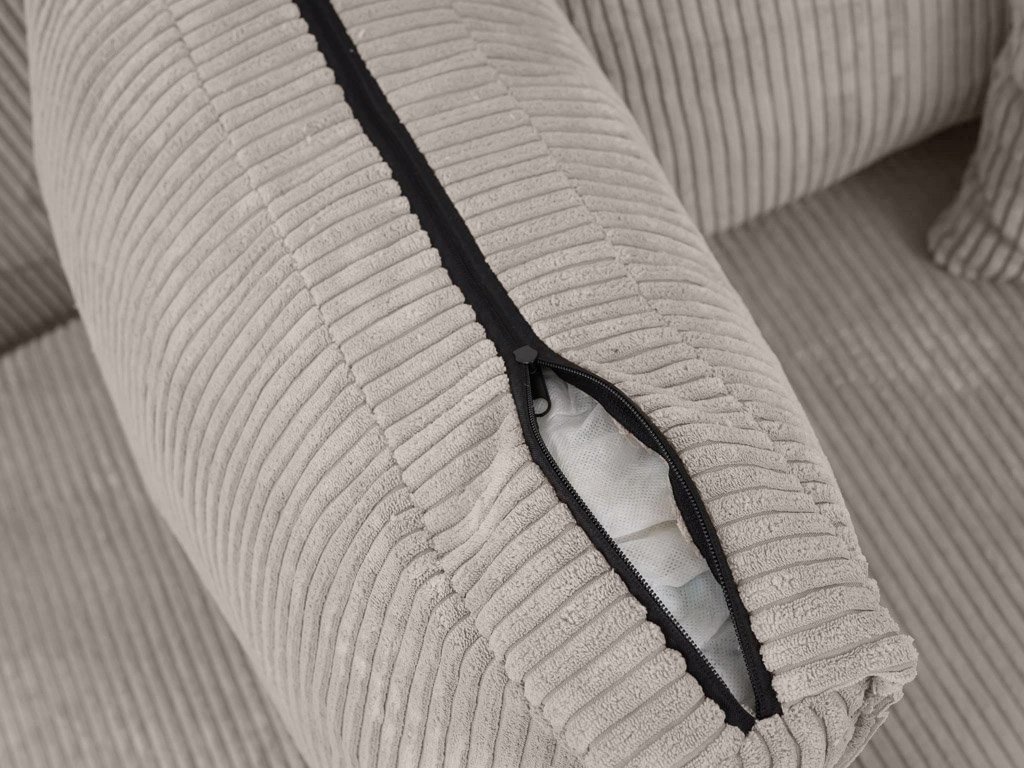 Setul este îmbrăcat cu țesătură Poso cu o textură fină, foarte plăcută la atingere, cu o greutate mare de 380g/m2 și rezistență la abraziune. Șezuturile sunt realizate din spumă poliuretanică de calitate, menținându-se în formă pe termen lung, completată cu arcuri ondulate. Construcția canapelei este din lemn masiv de pin și fag, cu materiale suplimentare din PAL, placaj și MDF.