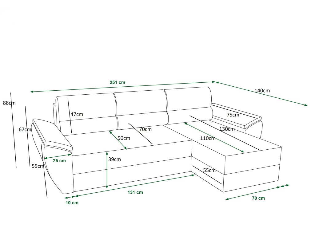 - Mărime: Canapea peste 250 cm