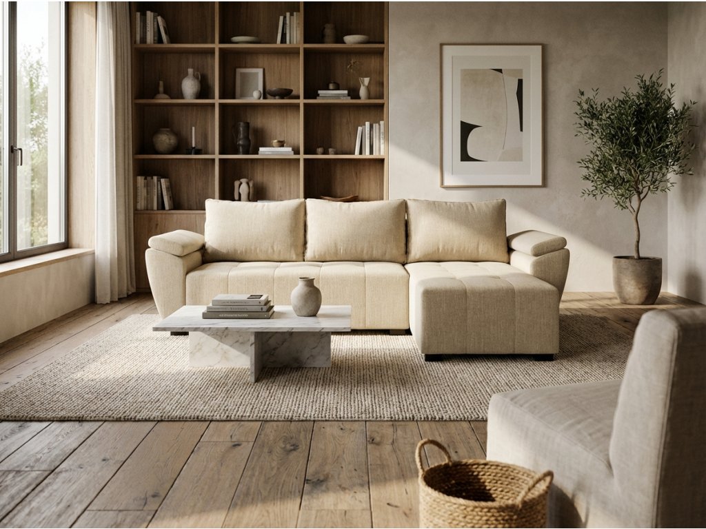 Coltar extensibil reversibil LIVARO 251x140 cm, crem