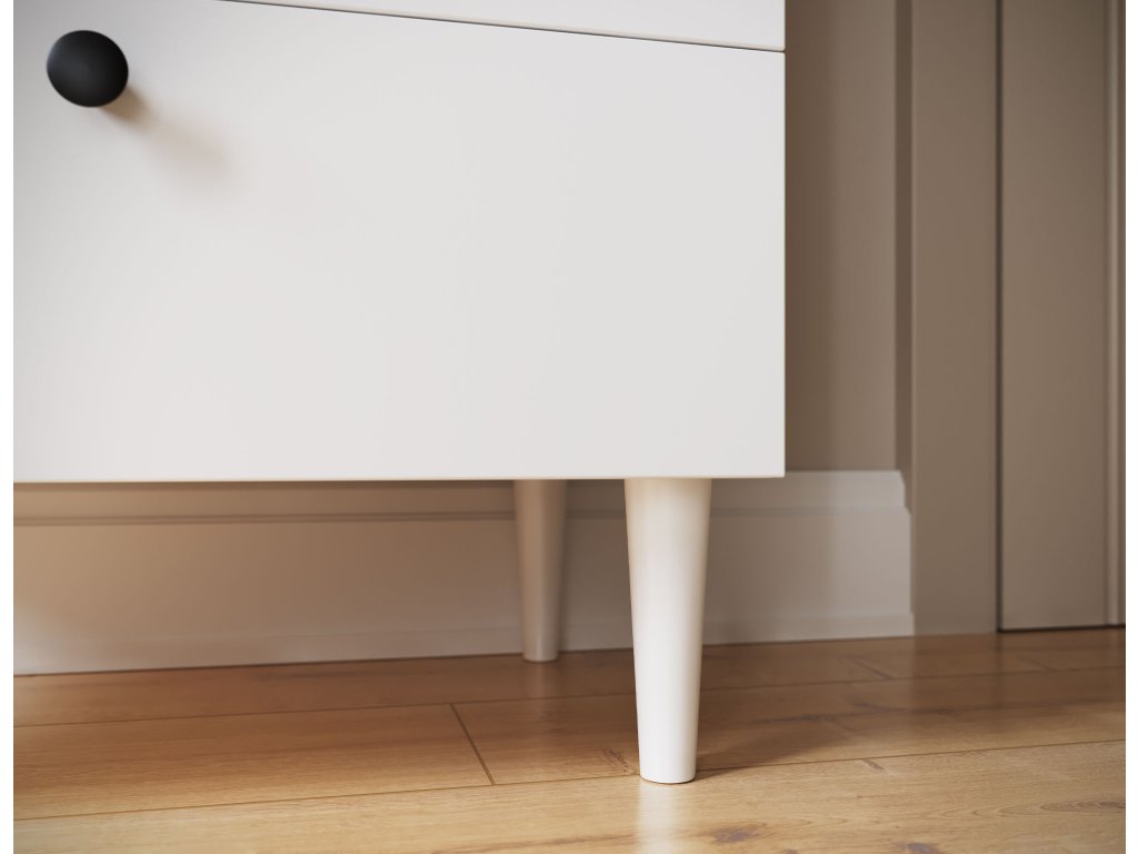 Această comodă este soluția ideală pentru oricine caută un element funcțional și estetic pentru spații mici. Designul său modern, în combinație cu sertarele practice și raftul deschis, oferă suficient spațiu pentru depozitarea lucrurilor fără a ocupa prea mult loc. Datorită culorii albe universale, se potrivește ușor cu alte piese de mobilier, în timp ce înălțimea picioarelor permite o întreținere ușoară a podelei. Comoda este o alegere excelentă pentru hol, dormitor sau birou, oferind o modalitate elegantă de a menține ordinea.
