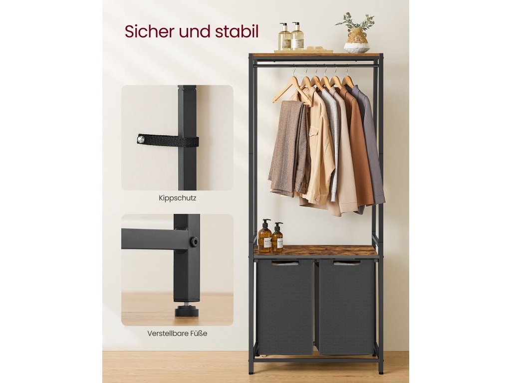 Cos de rufe negru cu doua compartimente si cuier ORGANIZA