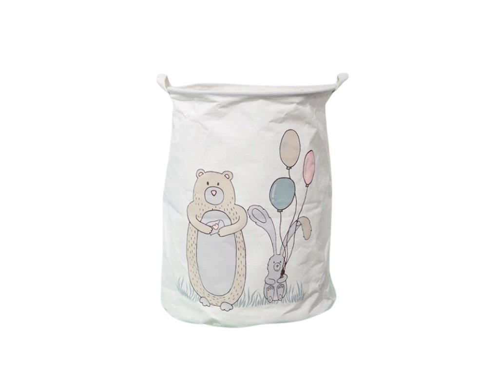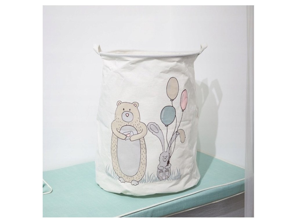 Cos pentru jucarii si rufe cu imprimeu BEAR 35x45 cm, alb