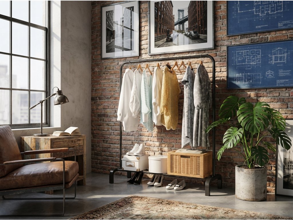 Acest suport multifuncțional pentru haine este soluția ideală pentru cei care caută o modalitate eficientă de a-și organiza garderoba. Datorită raftului și barei pentru umerașe, oferă suficient spațiu pentru depozitarea hainelor, accesoriilor sau încălțămintei. Este ideal pentru dormitor, dressing sau hol. Designul elegant se potrivește perfect într-un interior industrial și ajută la menținerea ordinii. Faceți ordine în spațiul dumneavoastră și bucurați-vă zilnic de confort.