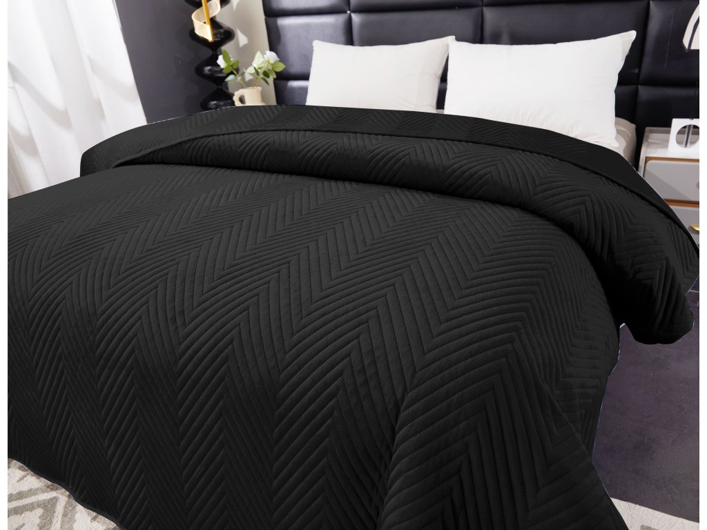 Cuvertura neagra de catifea cu model ARROW VELVET pentru pat