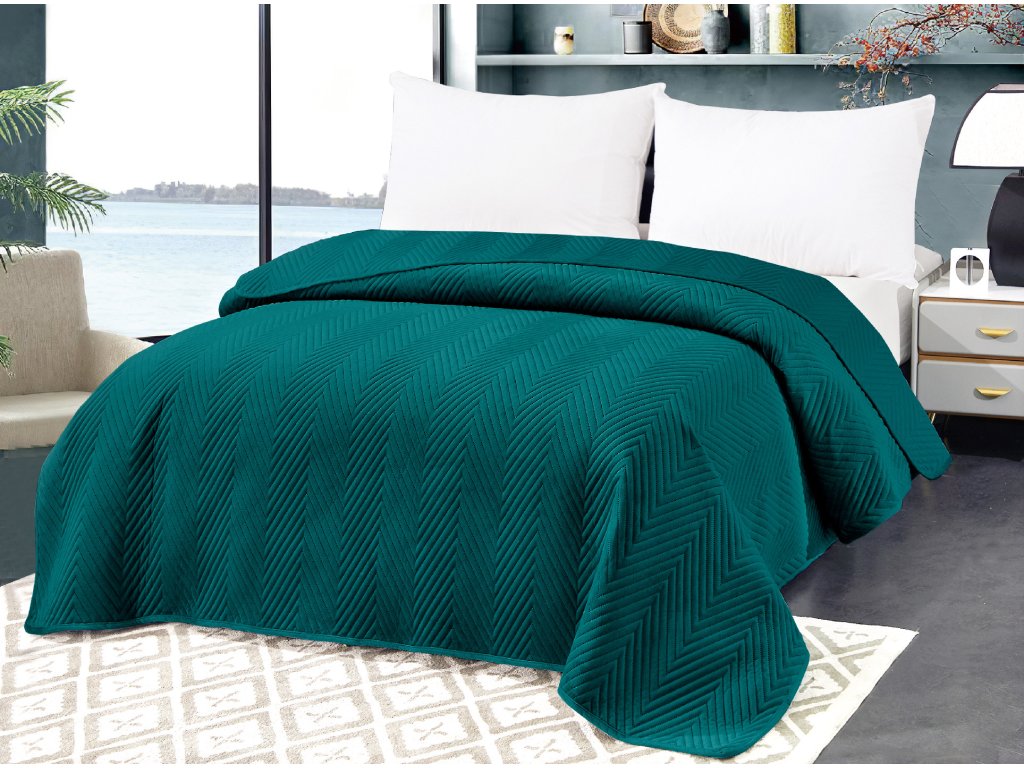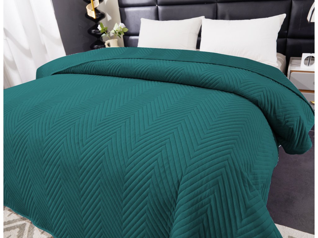 Cuvertura de pat din catifea turcoaz cu model ARROW VELVET