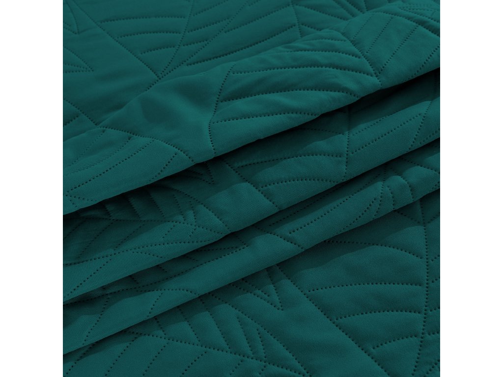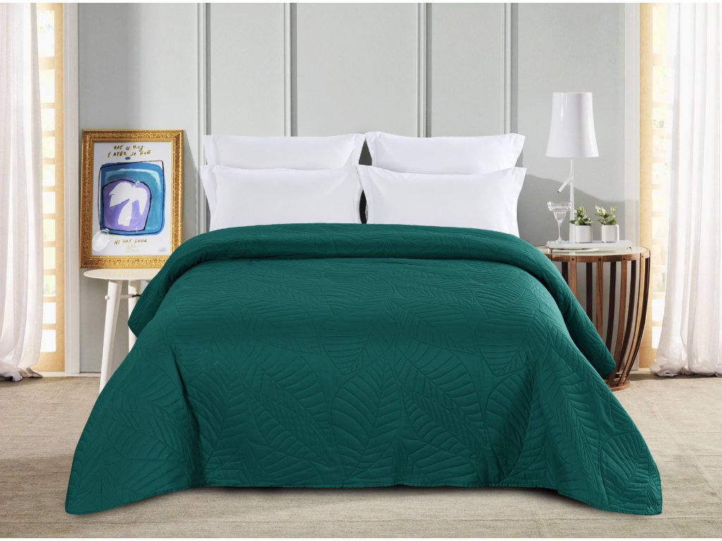 Cuvertura de pat turcoaz cu model LEAVES