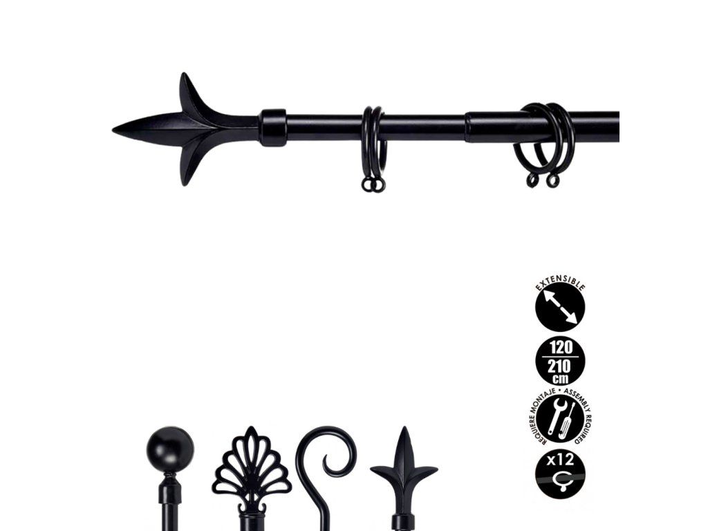 Galerie de metal neagra VALANCE TRIDE 120-210 cm