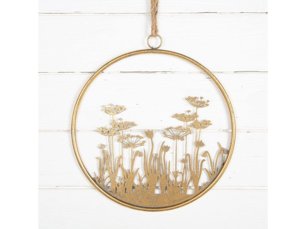 Decoratiune de perete din metal FLOWERS RING Ø 41 cm aurie