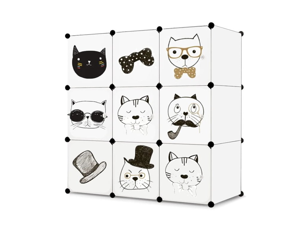 - Este format din 9 module - 33 de pătrate de culoare albă - 9 uși cu imprimeu de basm