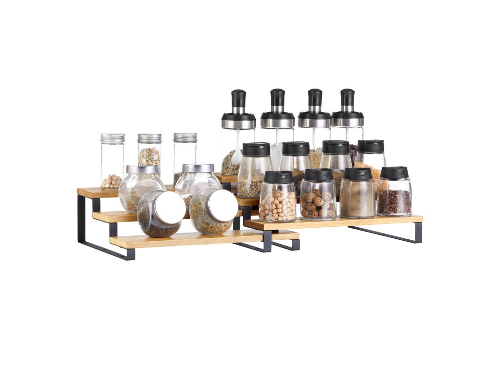 Rafturi pentru condimente CASCADE, negre, set de 2, bambus natural