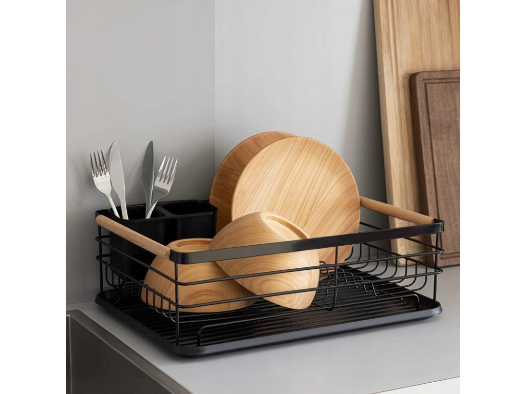 Suportul de uscare metalic Avero de culoare elegantă neagră se potrivește perfect cu orice interior de bucătărie. Designul său minimalist și modern se adaptează ușor la diferite stiluri, de la cele clasice la cele contemporane. Suprafața neagră nu doar adaugă un aer sofisticat, dar se combină ușor cu celelalte accesorii și aparate de bucătărie. Acest suport nu este doar un element practic, dar și estetic, care îmbunătățește aspectul bucătăriei dvs.