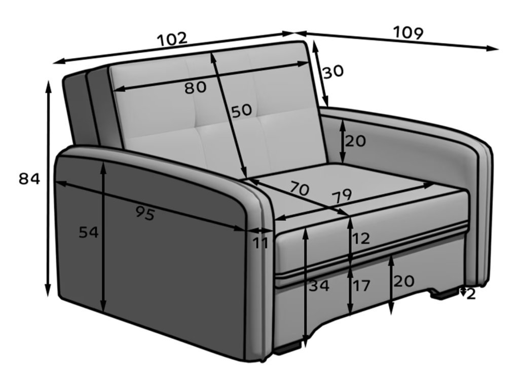 - Lățime totală: 102 cm