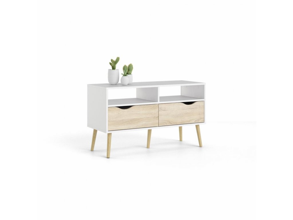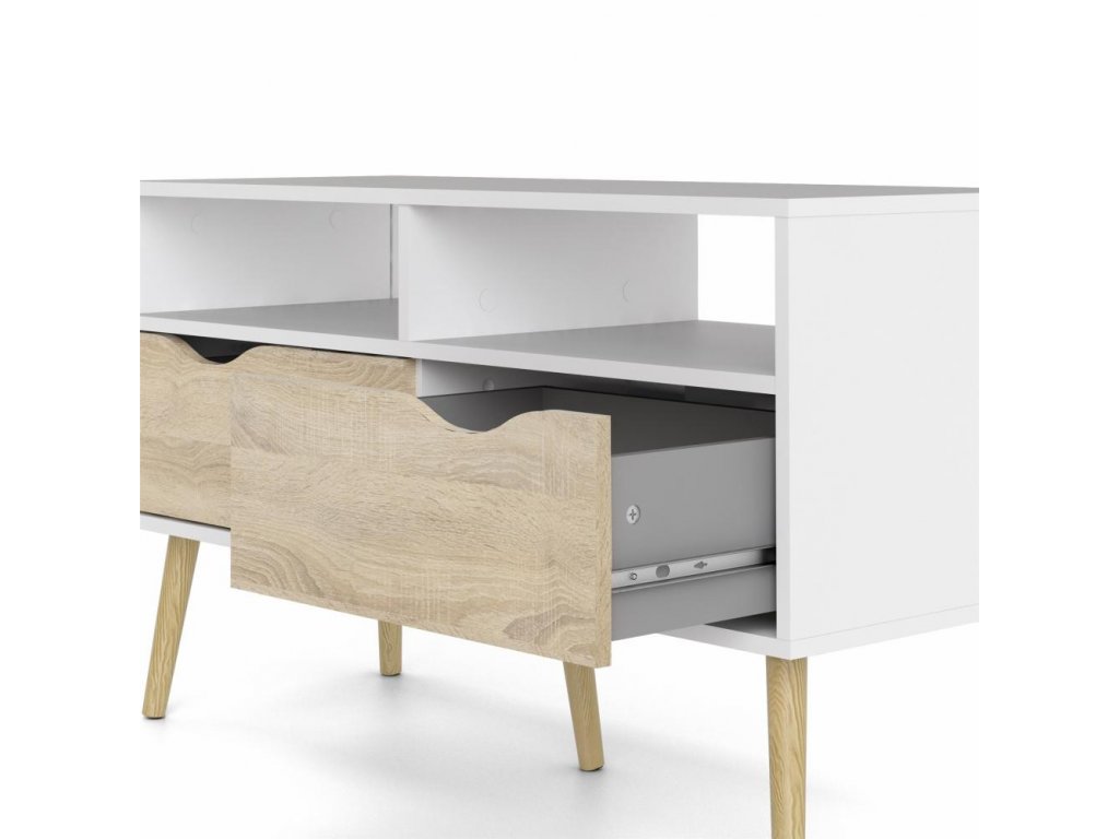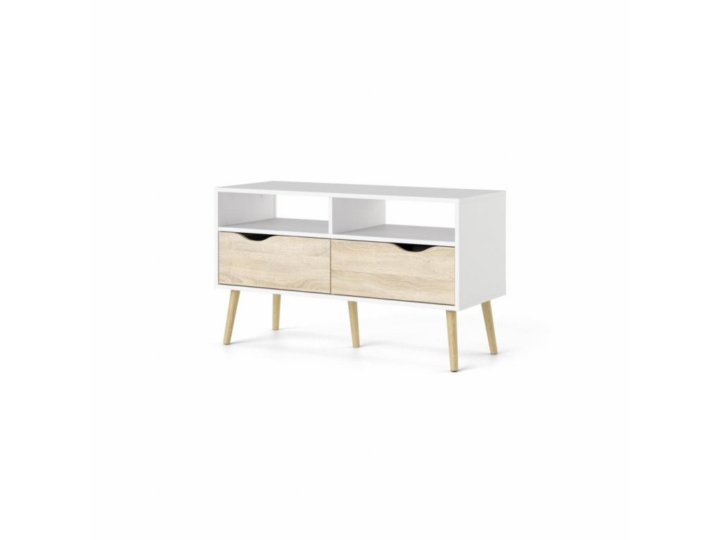 Comoda TV alba cu decor de stejar sonoma OSLO 75383