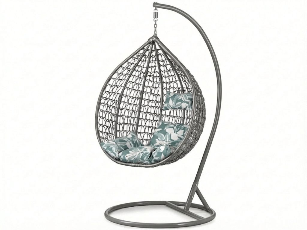 Scaun suspendat gri KOKON cu suport, perna verde-alb
