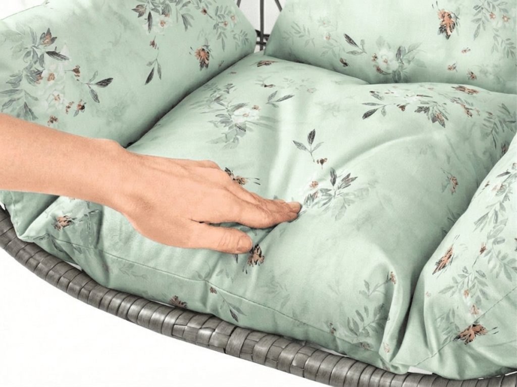 Scaun suspendat gri KOKON fara suport, perna verde deschis cu model
