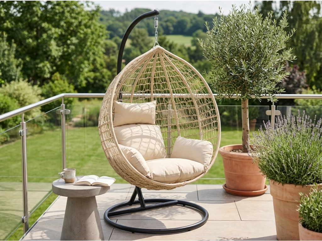 Descoperiți efectele benefice ale balansării cu scaunele noastre suspendate, cunoscute și sub numele de ouă, care vor răsfăța și sănătatea voastră mentală. Balansarea generează o stare de bine, liniște interioară și reduce eficient tensiunea psihică. Scaunele suspendate de înaltă calitate realizate din ratan artificial sunt extrem de rezistente la condițiile meteo nefavorabile și la animalele de companie. Ratanul artificial este aproape imposibil de deosebit de cel natural la prima vedere. Scaunele noastre suspendate sunt ideale atât pentru grădină, cât și pentru interior. Bucurați-vă de momente de relaxare pe aceste scaune în stil scandinav, care sunt printre cele mai populare piese de mobilier modern. Oferiți-vă o relaxare luxoasă și aduceți în casa și grădina dumneavoastră elemente de liniște și eleganță.