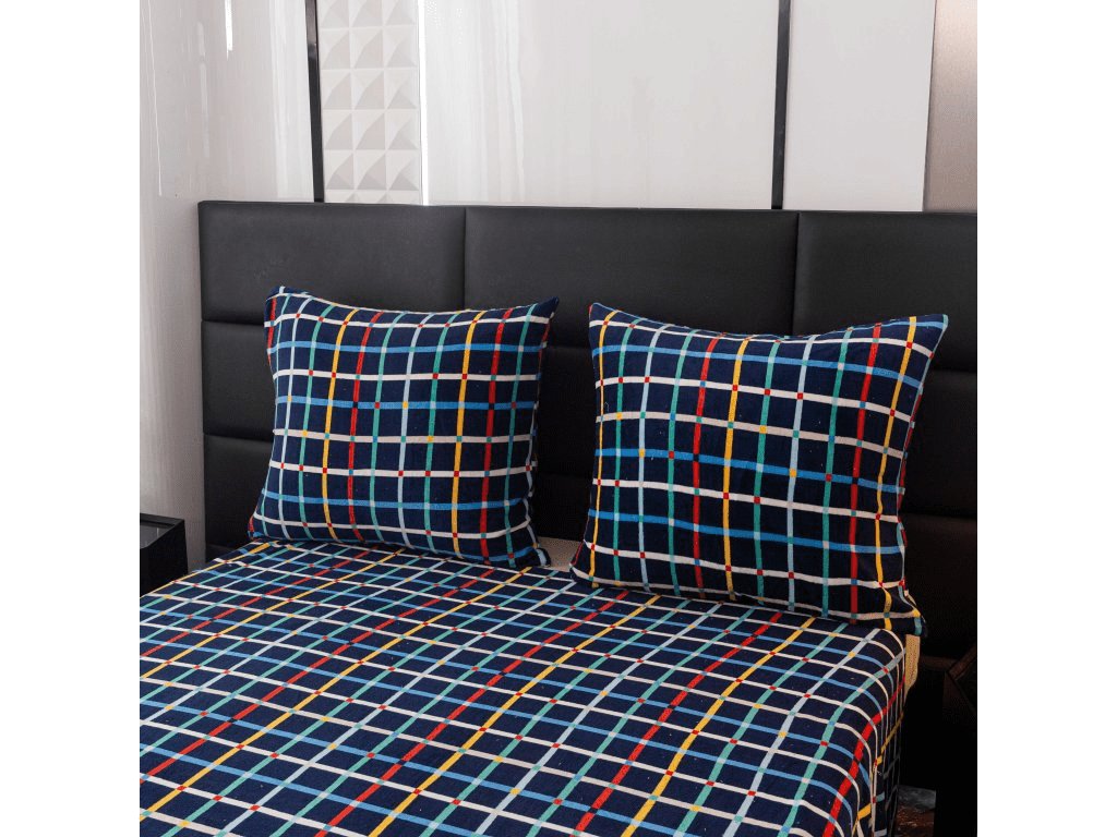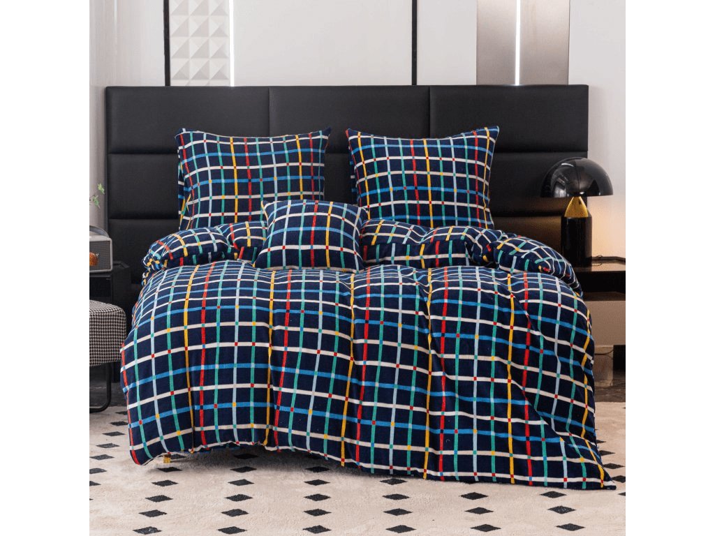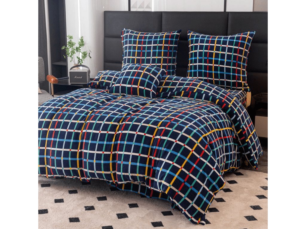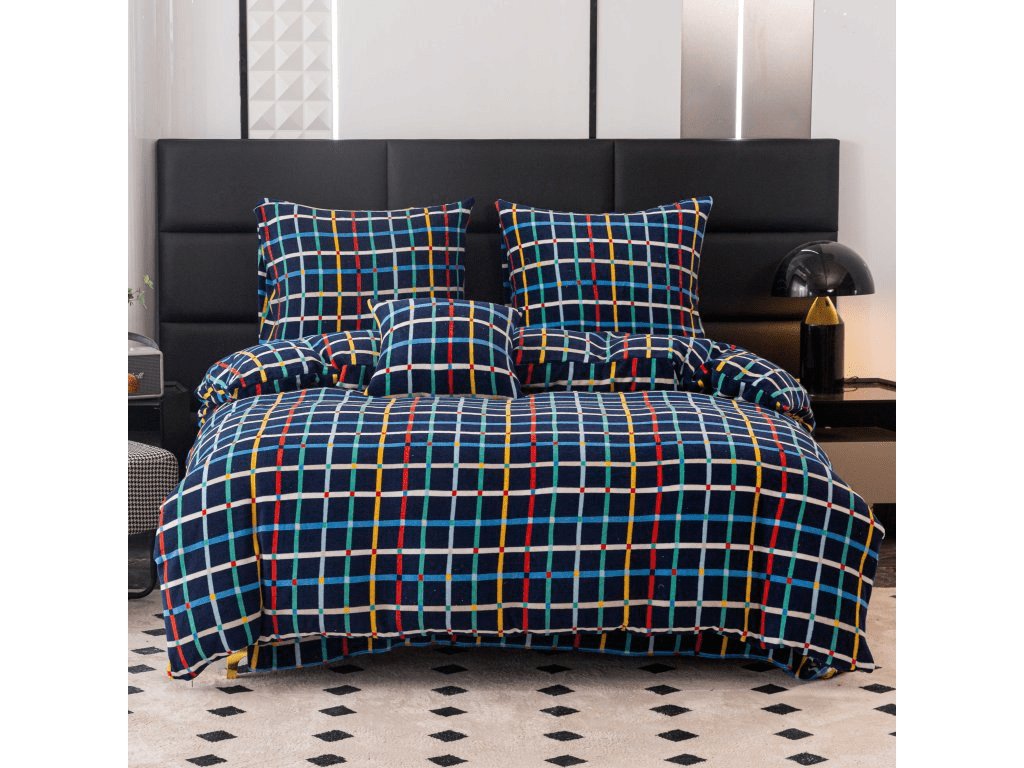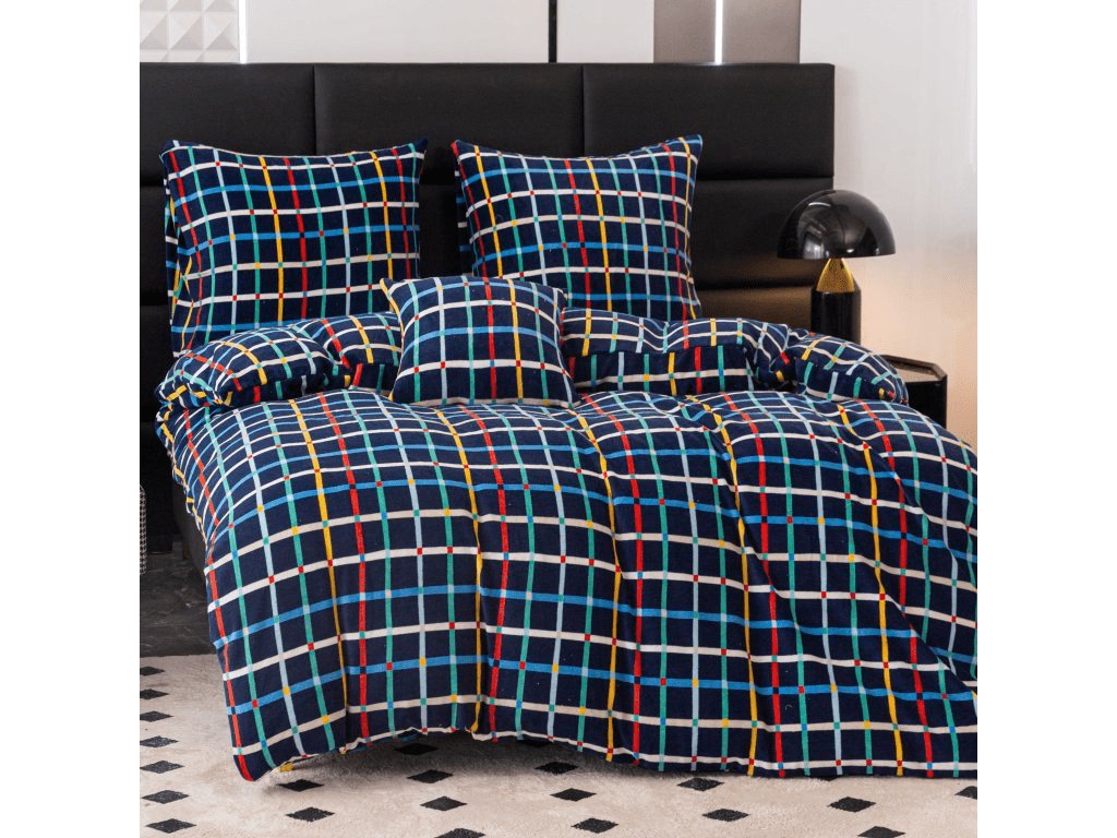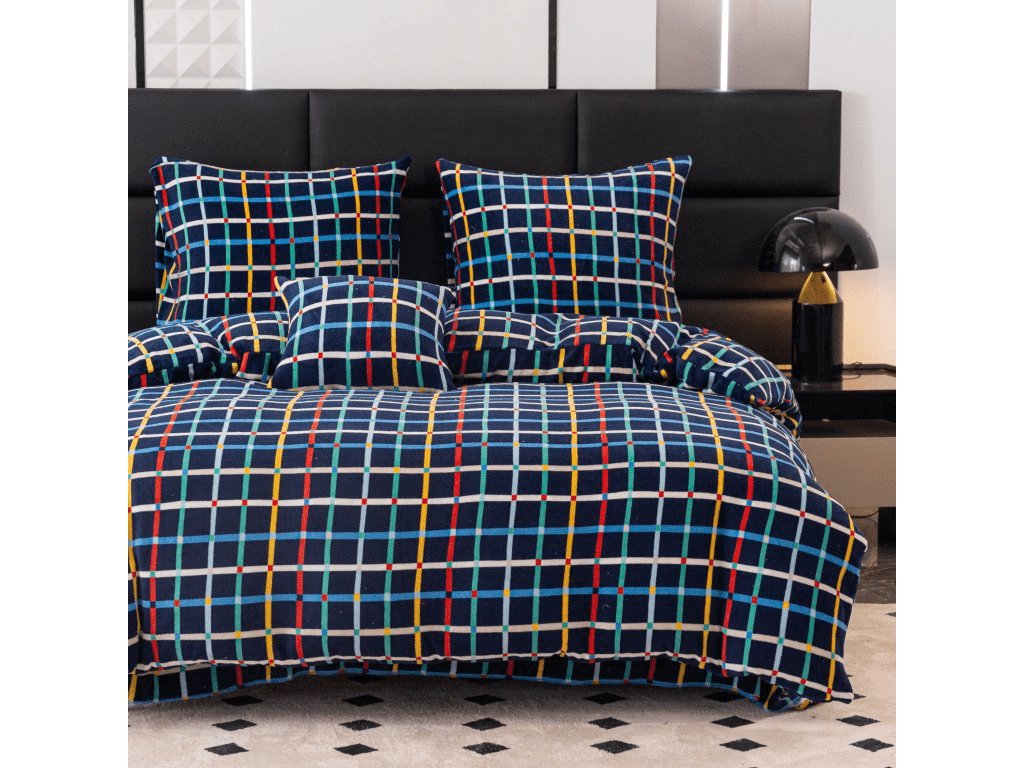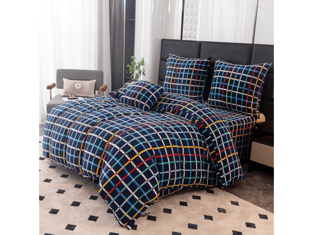 Lenjerie de pat din microplus GRID albastru inchis