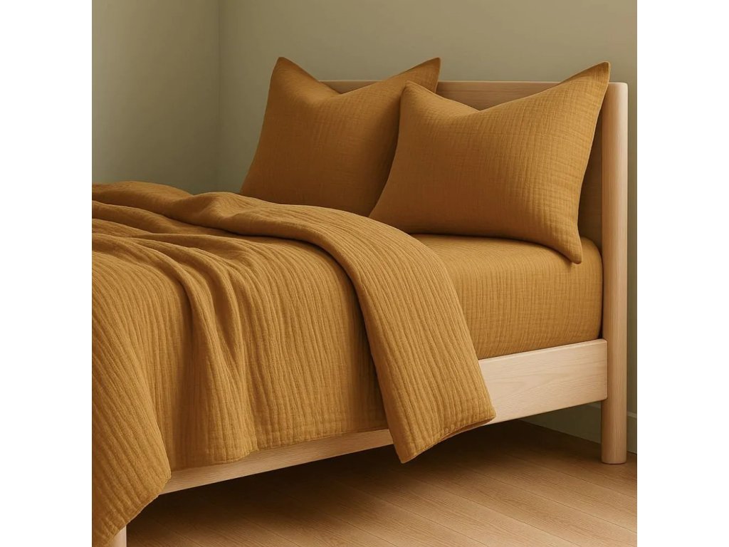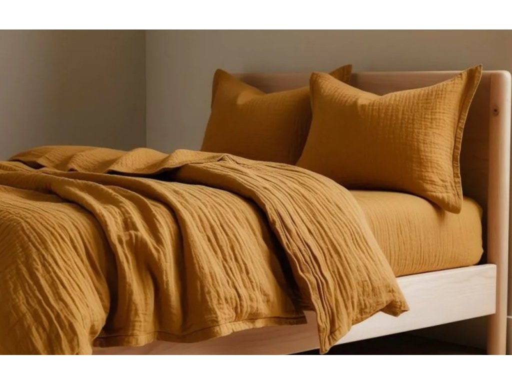 Lenjeria de pat din mușelină de 100% bumbac este extrem de ușoară, aerisită și plăcută la atingere, ideală pentru lunile de vară și confortul pe tot parcursul anului. Structura deschisă a fibrelor asigură o respirabilitate ridicată și uscare rapidă. Datorită moliciunii sale, este potrivită și pentru pielea sensibilă, nu necesită călcare și devine mai moale cu fiecare spălare. Apariția sa naturală ridată se potrivește frumos cu stilurile scandinav, boho și natural ale interiorului. Ideală pentru cei care doresc să combine practicitatea, eleganța și confortul într-un singur produs.