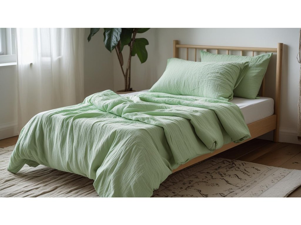 Lenjerie de pat MOELLIN muselina verde deschis