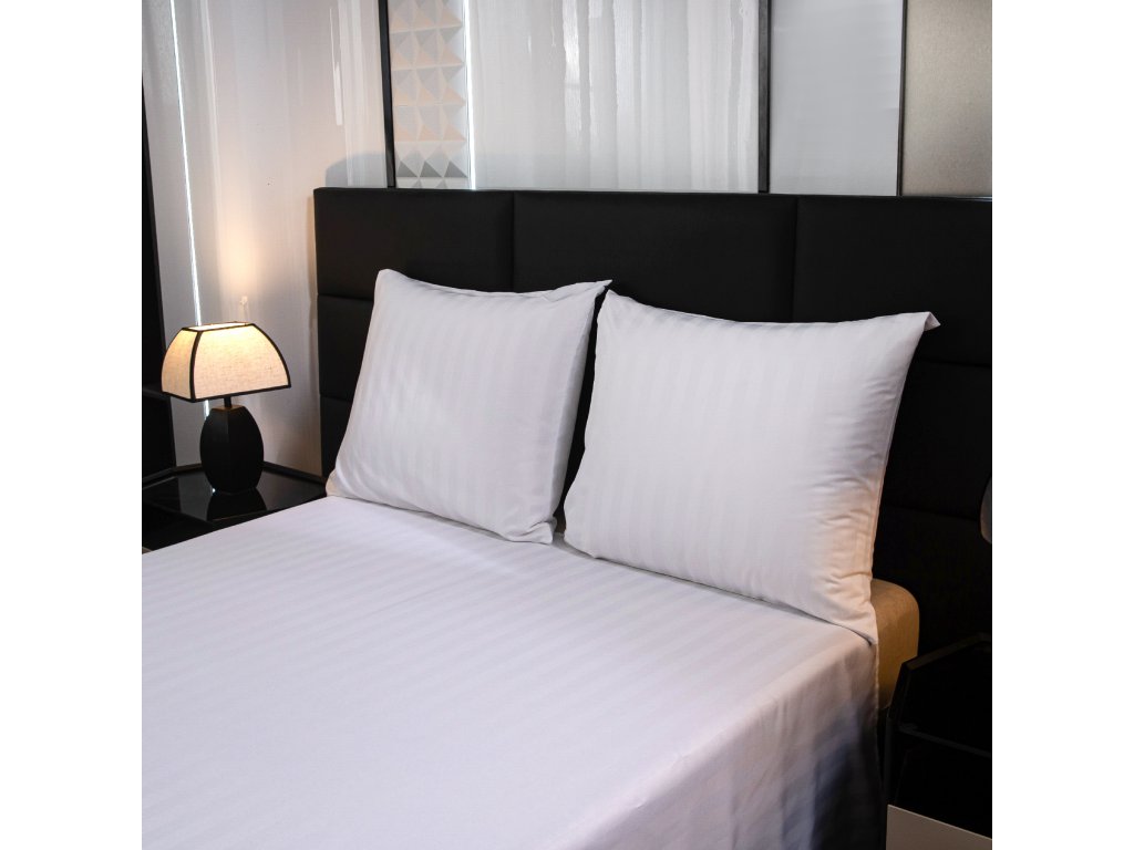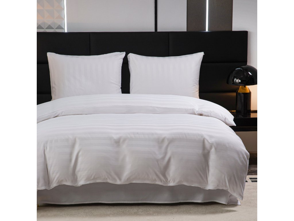 Lenjerie de pat hoteliera din microfibra JASMINE alba - dunga 2 cm
