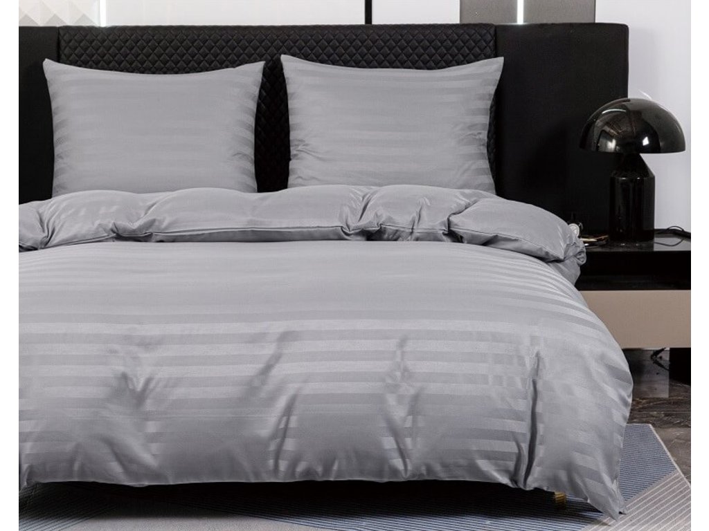 Lenjerie de pat hoteliera din microfibra JASMINE gri deschis - dungi 2 cm