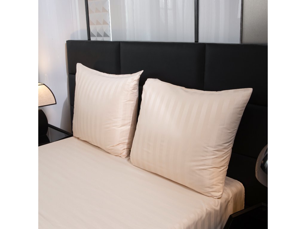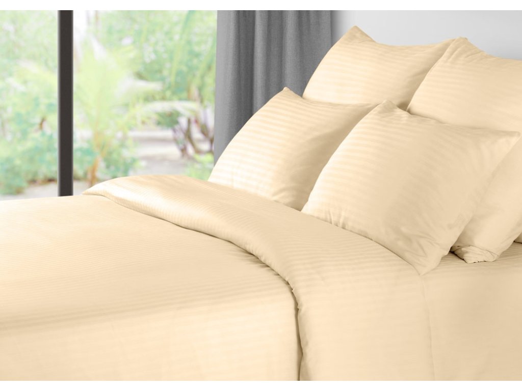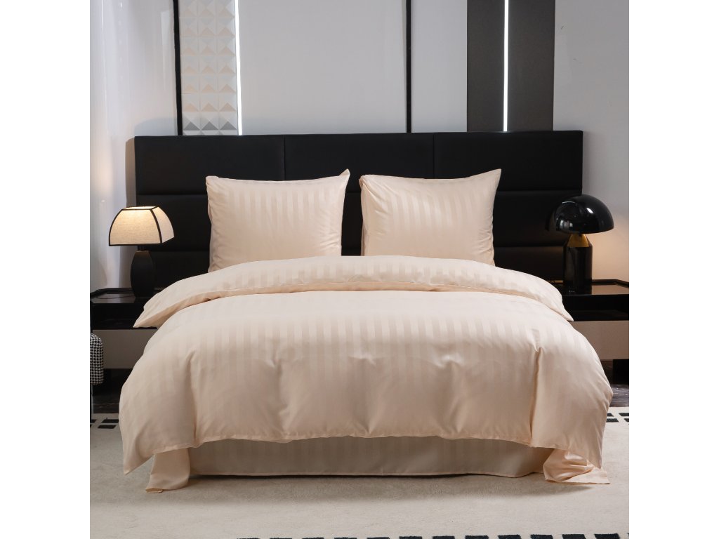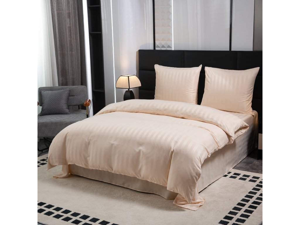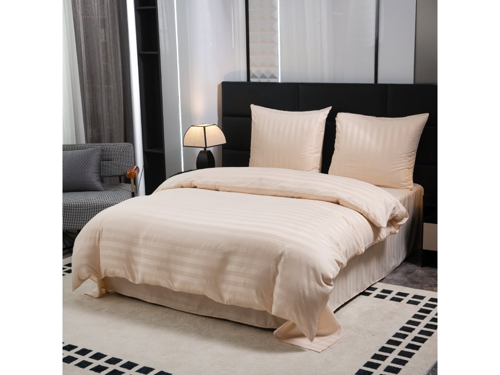 Lenjerie de pat hoteliera din microfibra JASMINE sampanie - dunga 2 cm