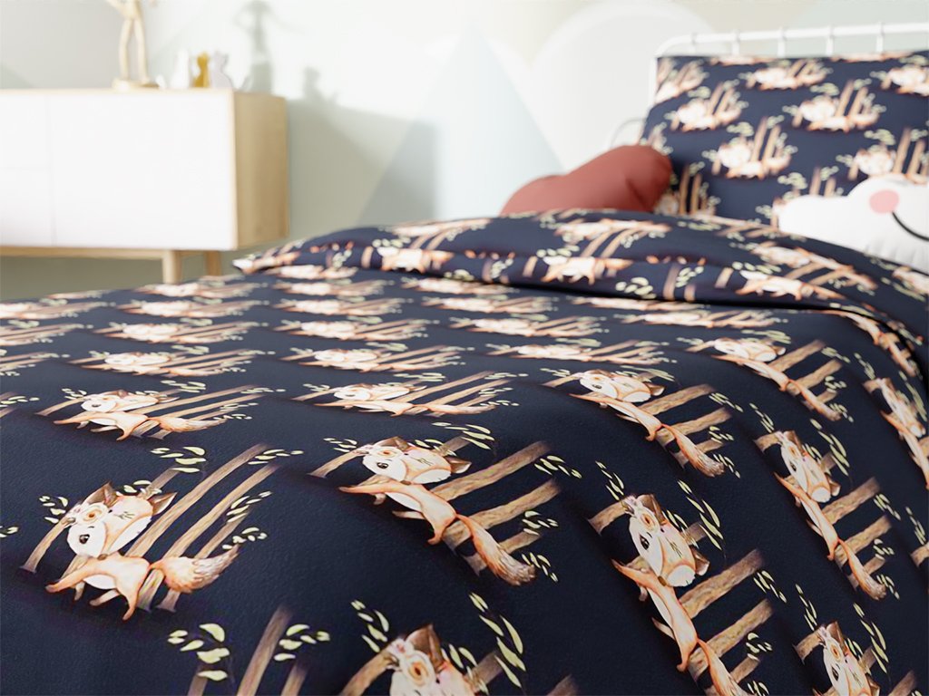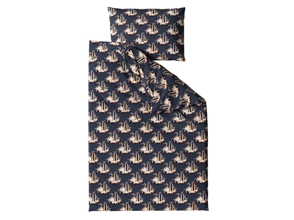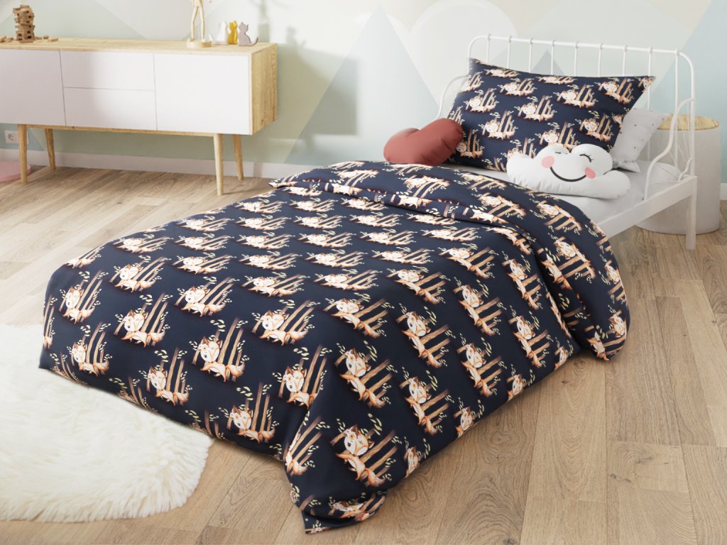 Lenjerie de pat din bumbac pentru patut FOX IN THE FOREST albastru inchis