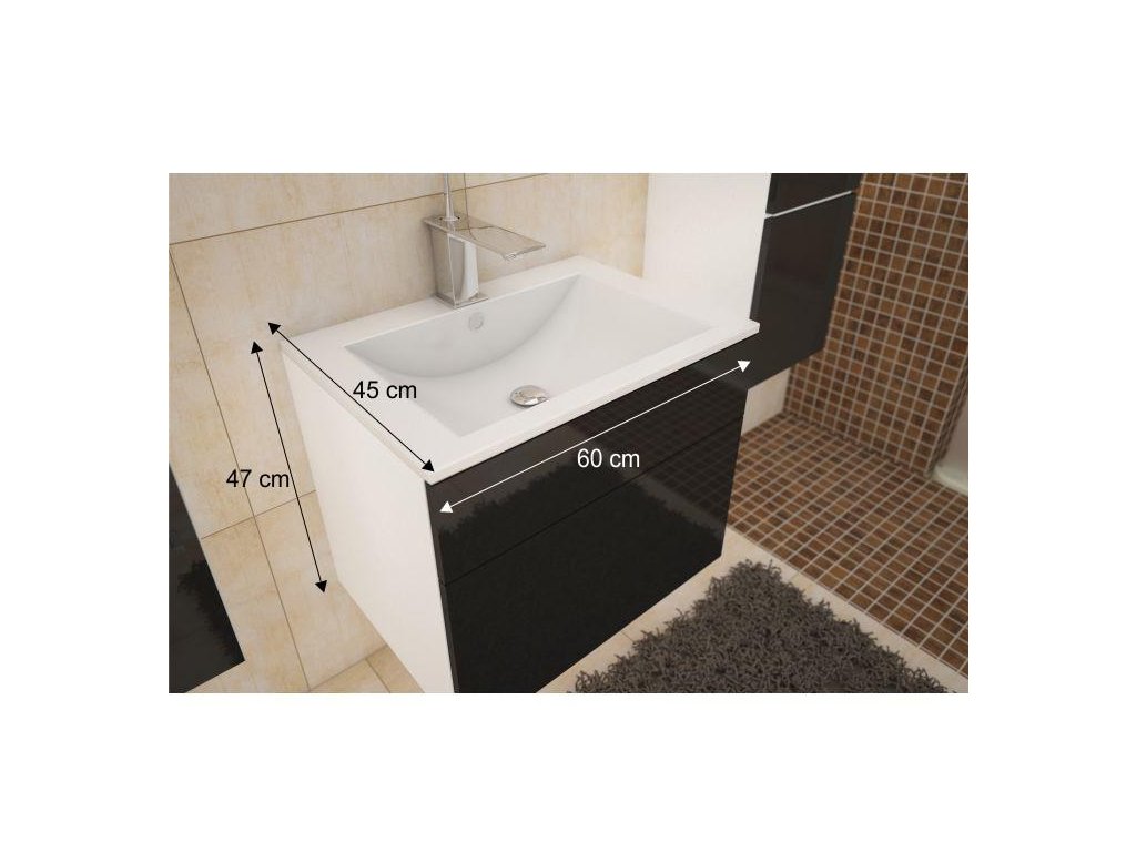 PROMOTIE Dulap alb sub lavoar MASON BL13, negru luciu ridicat HG II. calitate