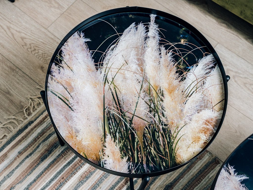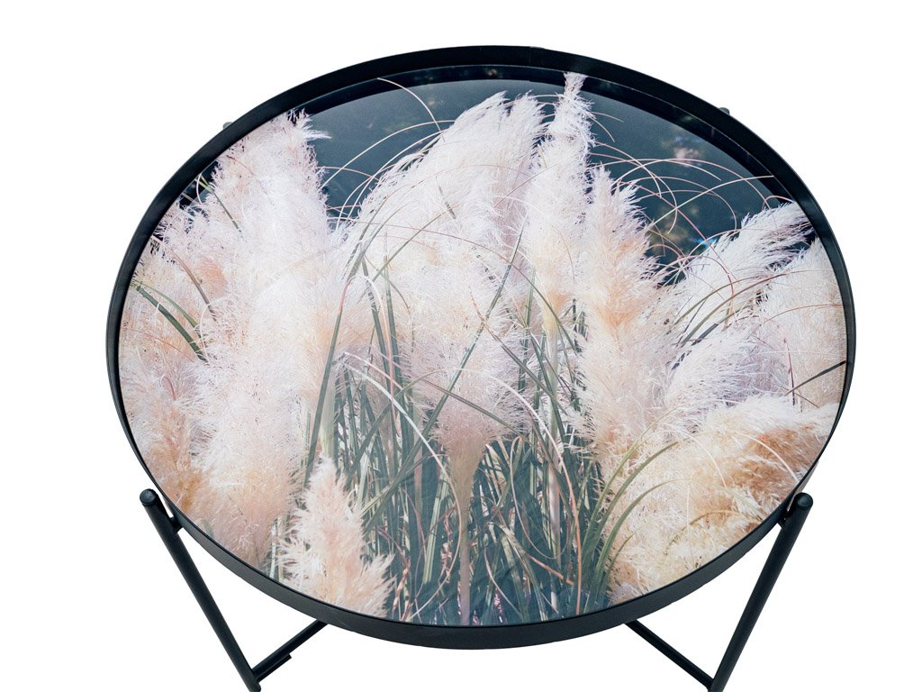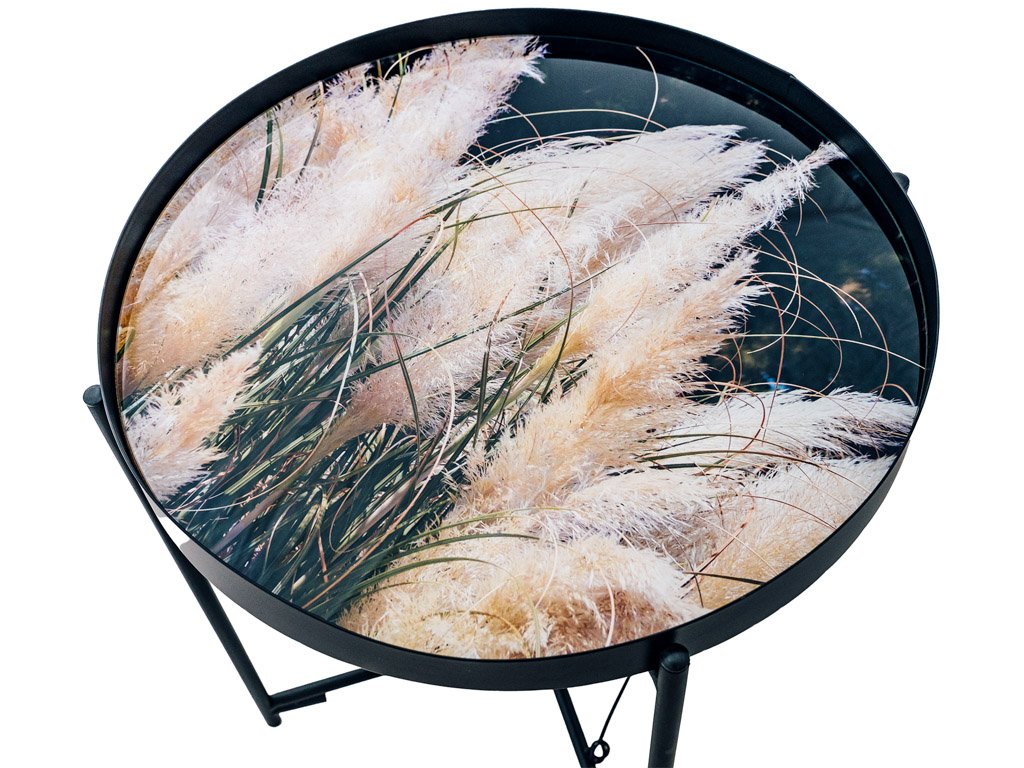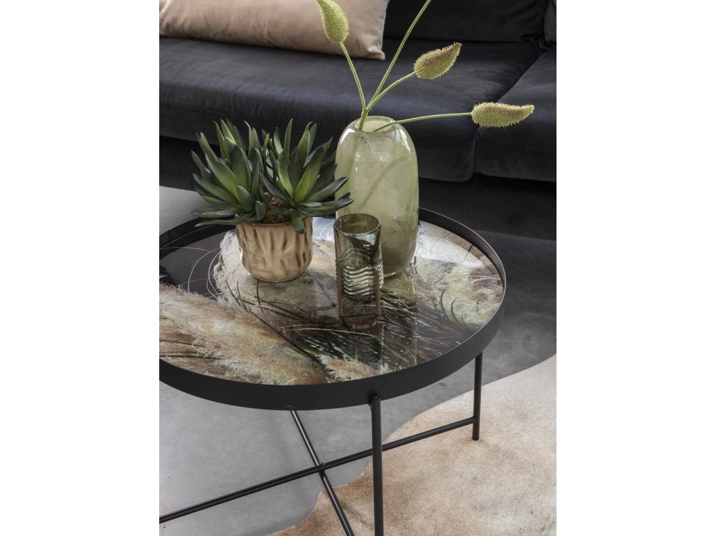 Un model de ierburi ornamentale pe un fundal negru, decorat cu accente subtile de bej, creează o combinație elegantă și armonioasă de culori. Acest design elegant este perfect pentru a completa lumânările, florile și alte decorațiuni care îi subliniază rafinamentul. Măsuța de cafea Lyria devine astfel nu doar practică, ci și un element estetic distinctiv al fiecărui interior.