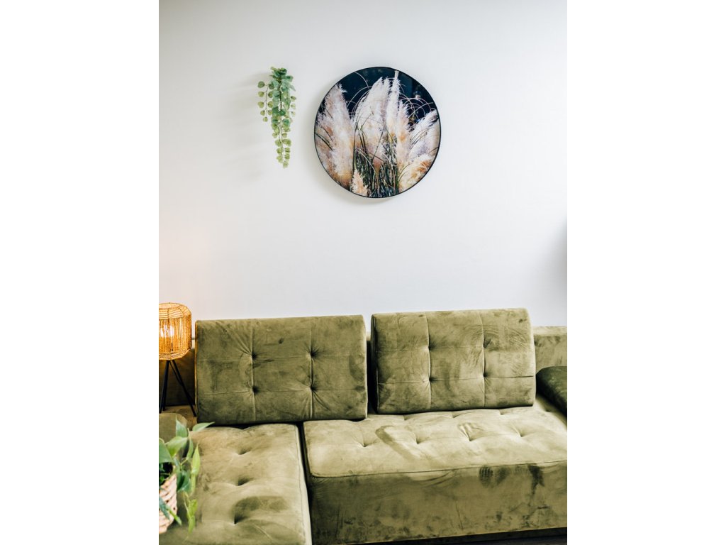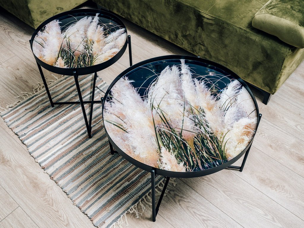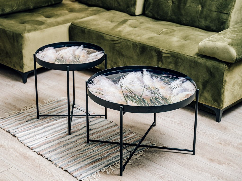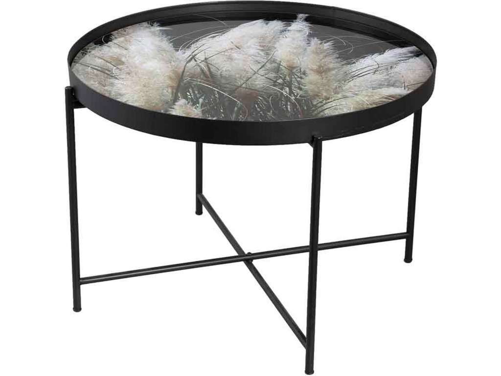 Un model de ierburi ornamentale pe un fundal negru, decorat cu accente subtile de bej, creează o combinație elegantă și armonioasă de culori. Acest design elegant este perfect pentru a completa lumânările, florile și alte decorațiuni care îi subliniază rafinamentul. Măsuța de cafea Lyria devine astfel nu doar practică, ci și un element estetic distinctiv al fiecărui interior.