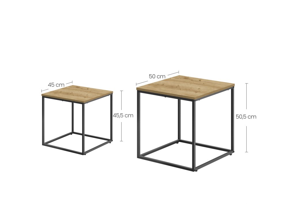 Set 2 piese mese de cafea QUADRO, decor stejar artisan