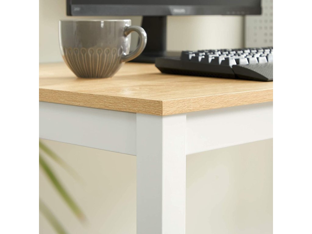 Masa de sufragerie alba cu blat in decor stejar TESSA 120x60 cm