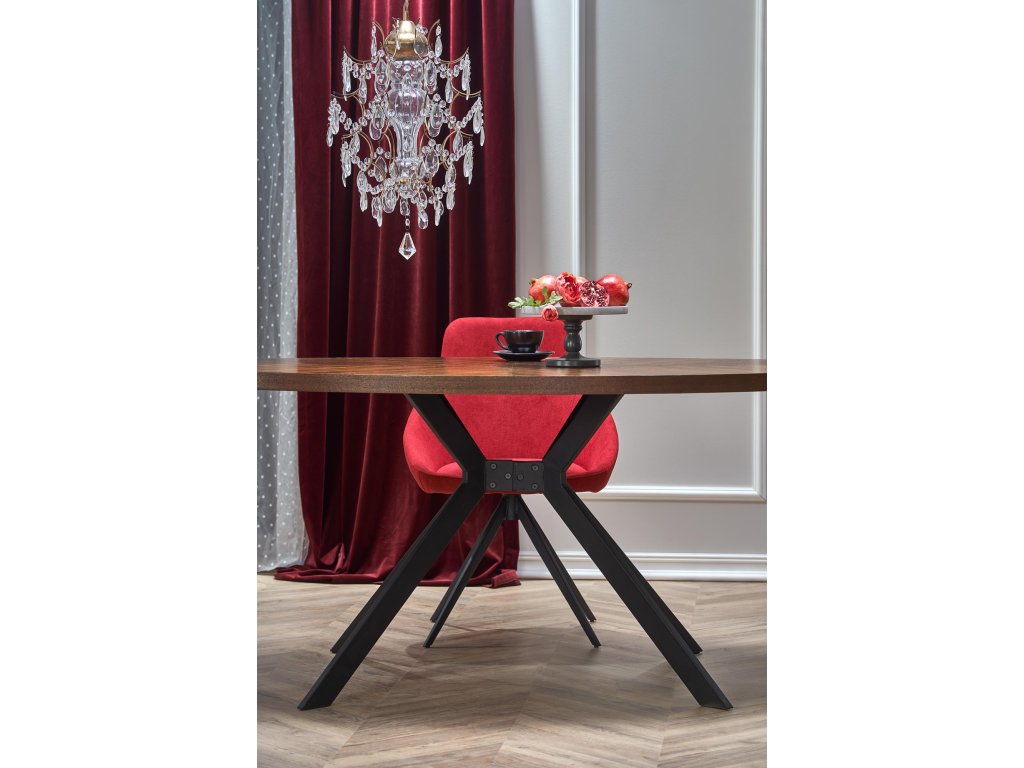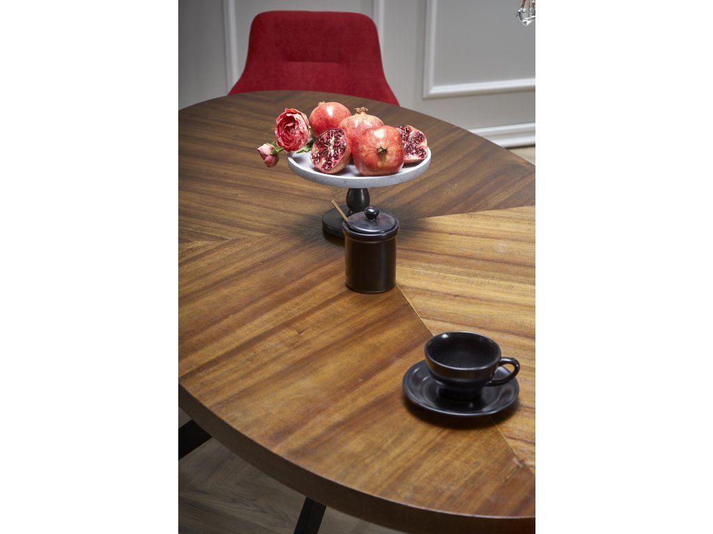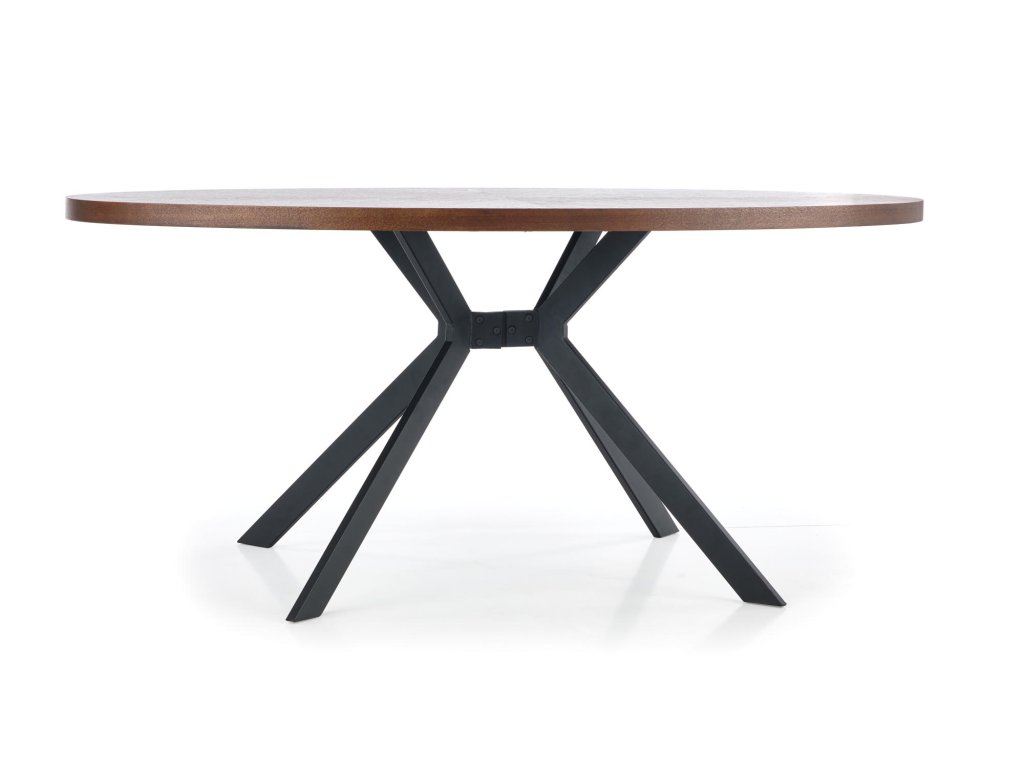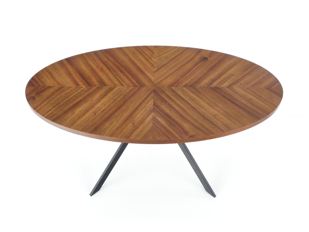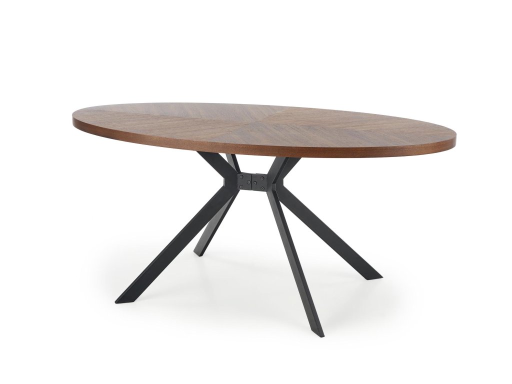 Masa de sufragerie ovala neagra LOCARNO cu decor de nuc, 170x90 cm