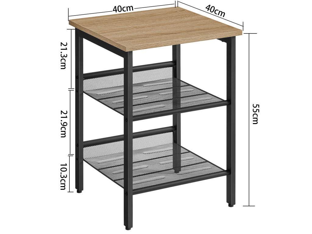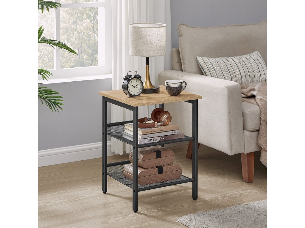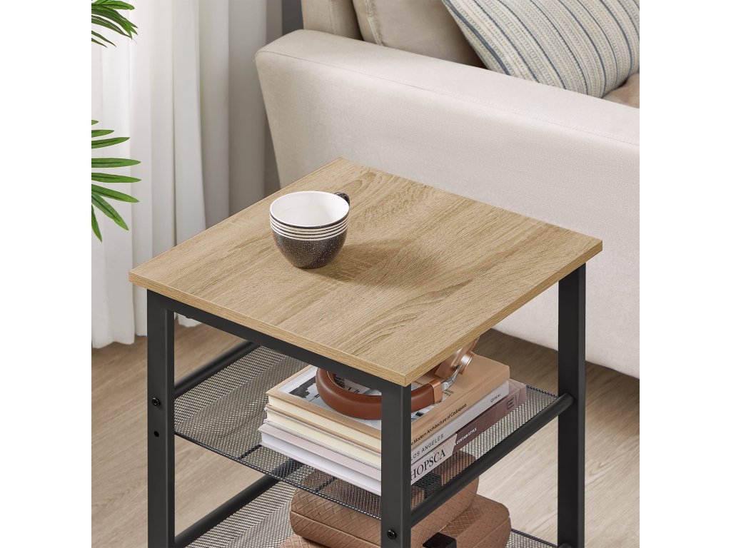 Se pretează excelent ca măsuță de cafea lângă canapea, unde poți așeza cafeaua, o carte sau mici decorațiuni. În dormitor, îndeplinește rolul de noptieră cu suficient spațiu pentru o lampă, un ceas desteptător sau cartea preferată. Datorită celor două rafturi rezistente din plasă metalică, ai, de asemenea, mai mult spațiu pentru organizarea lucrurilor pe care vrei să le ai mereu la îndemână.