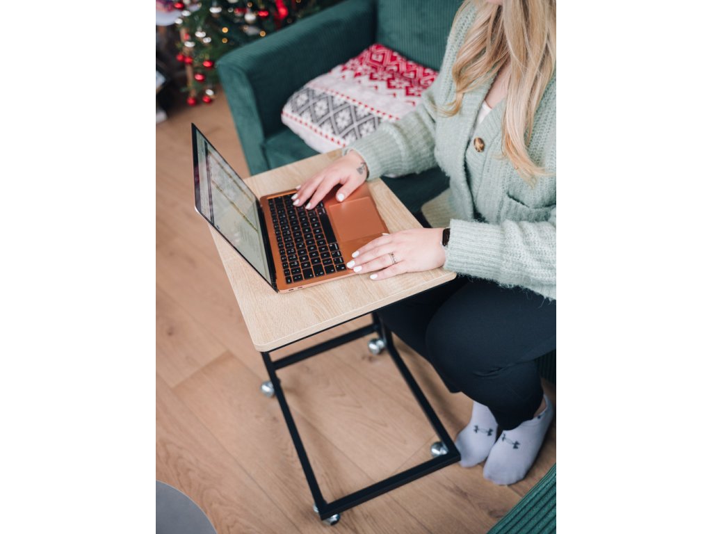 Folosiți măsuța la maximum datorită variabilității și ușurinței sale de manipulare. Cu roțile, o puteți muta ușor conform necesităților, fie că servește ca suprafață de lucru, loc pentru laptop sau ca măsuță lângă canapea. Dacă preferați stabilitatea, este suficient să utilizați picioarele, care sunt incluse în pachet. Designul minimalist combinat cu decorul rustic din stejar sonoma va completa perfect interiorul dumneavoastră, fie în sufragerie, dormitor sau birou.