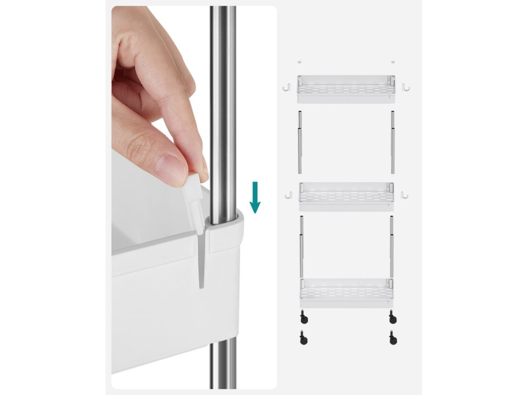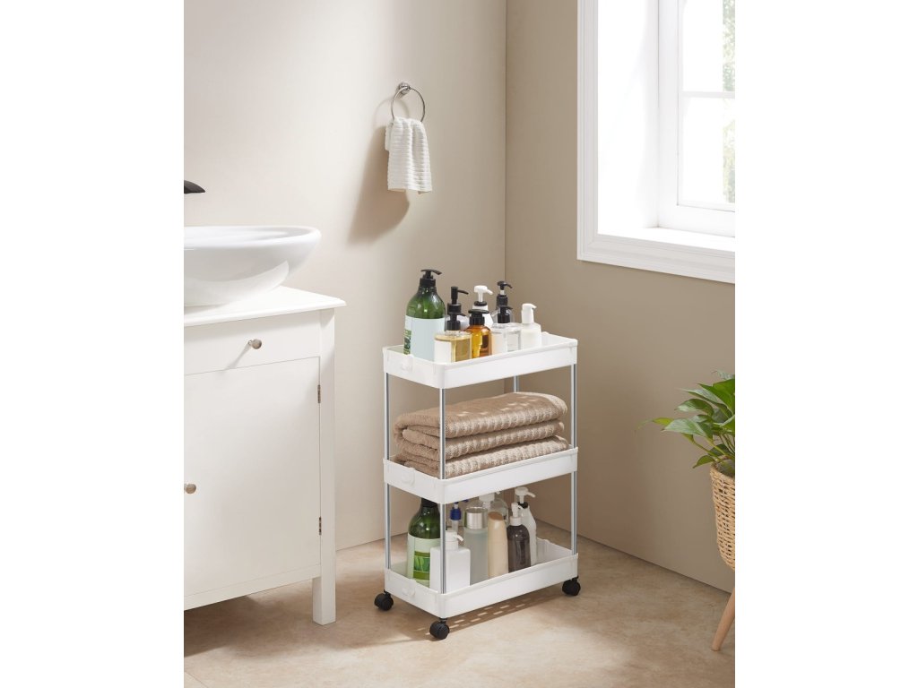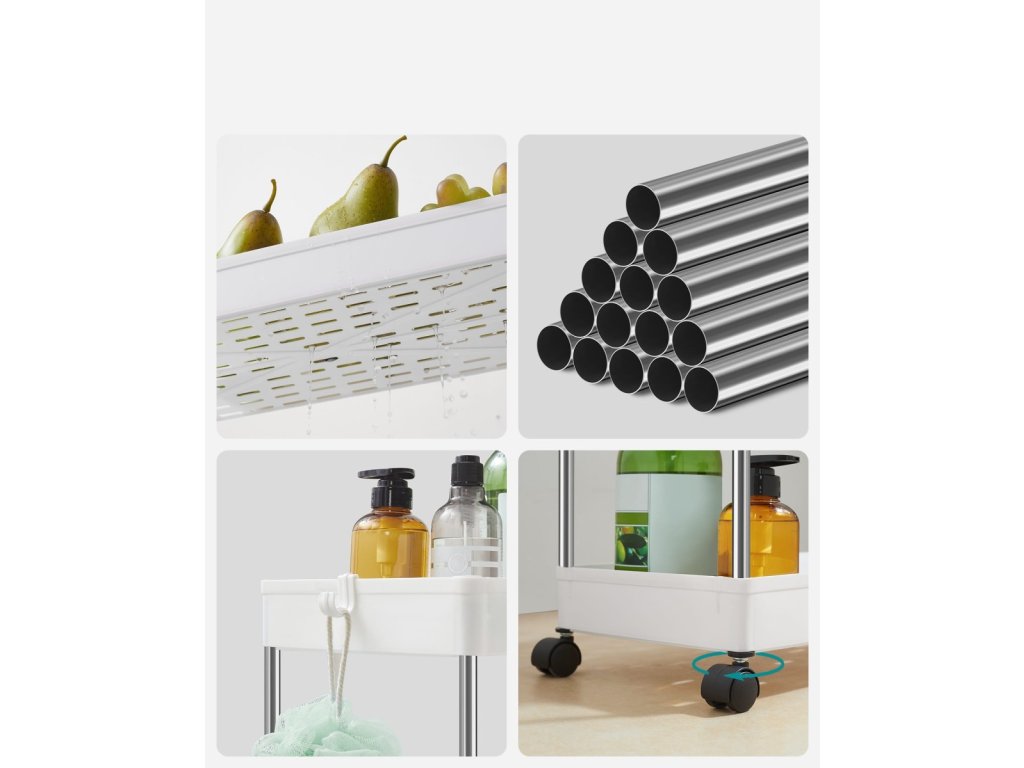 Rafturile practice pentru baie sunt solutia ideala pentru mentinerea ordinii si claritatii. Datorită construcției ușoare și durabile din oțel cromat și polipropilenă, acestea sunt ușor de întreținut și rezistente la umiditate. Rafturile pe mai multe niveluri permit utilizarea eficientă a spațiului și accesul ușor la toate lucrurile necesare. Datorită posibilității de a adăuga sau îndepărta rafturi și roți, acestea pot fi adaptate cu ușurință nevoilor dumneavoastră specifice.