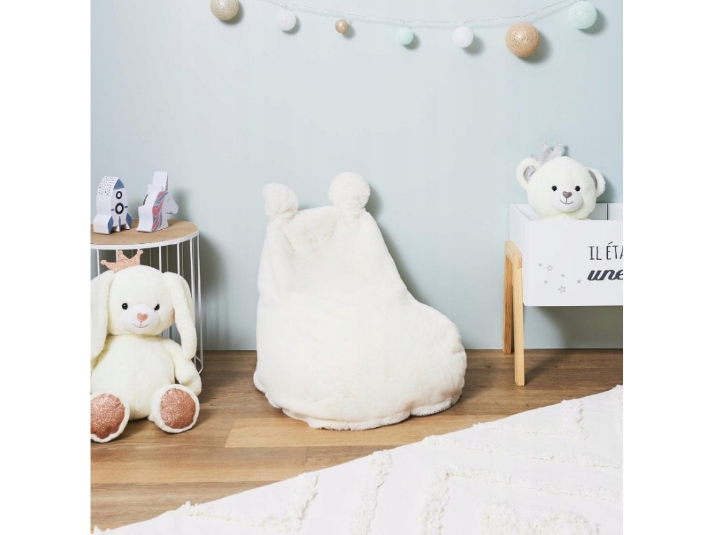 Bean bag pentru copii din blana artificiala BUBBLO, alb