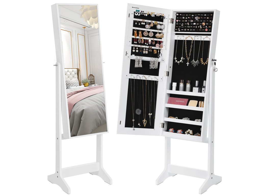 Dulap cu oglinda pe picioare pentru bijuterii JEWELIA, alb