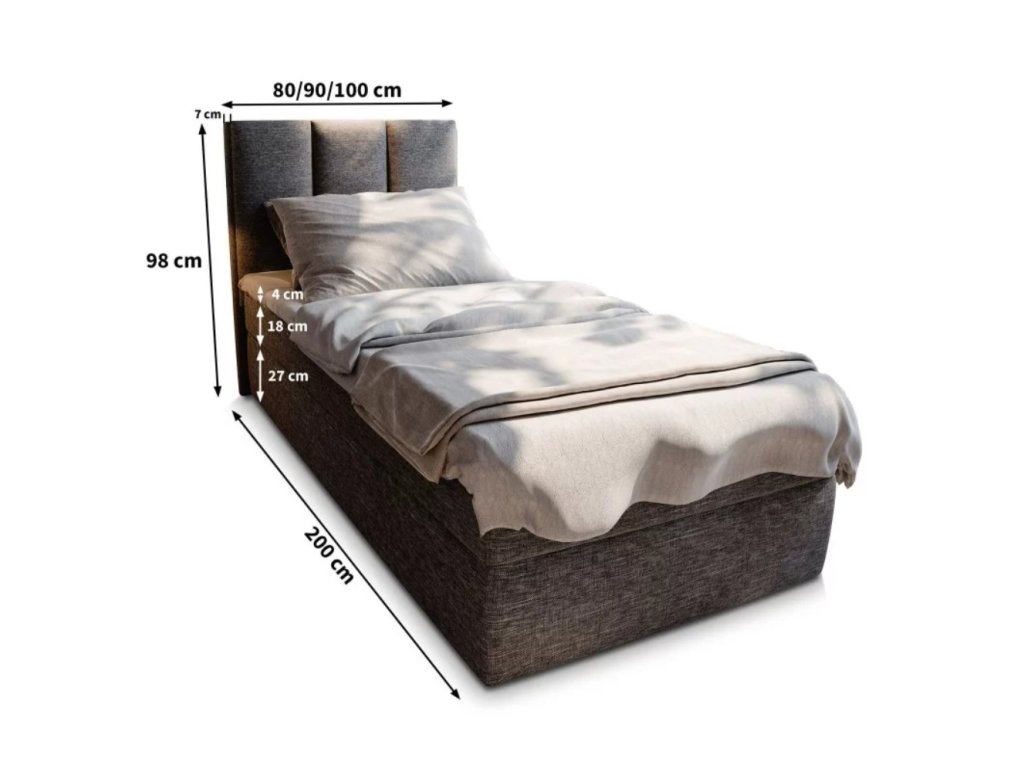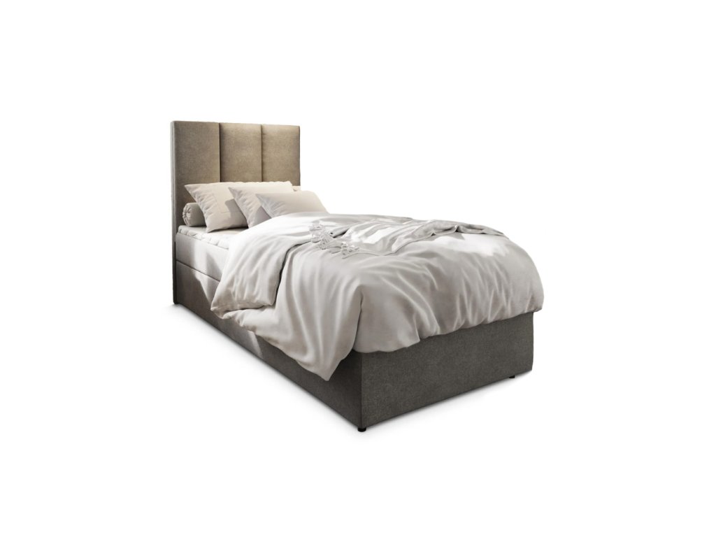 Pat boxspring tapițat MERALIS 90x200 cm gri