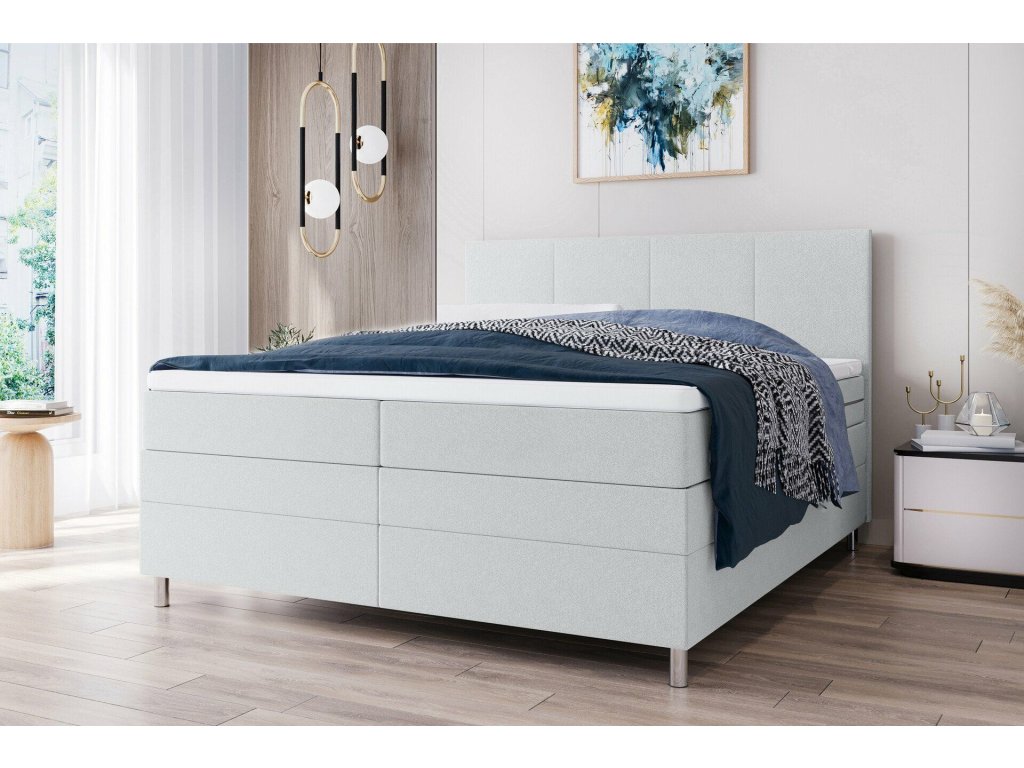 Pat tapițat boxspring CARINA 160x200 cm gri deschis NEVE 02